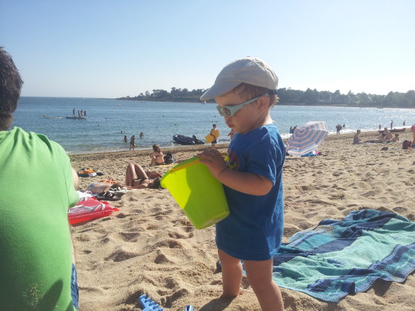 Après la sieste nous rejoignons Bénodet point de rendez-vous pour un dîner avec ma mère. Et surtout nous nous baignons enfin car ça y est il fait chaud ! Après le dîner (crêpe + crêpe + crêpe…) nous nous promenons en bord de mer. Mouette profite de l’aire de jeux en compagnie de son Papi Jim’ pendant que Chéri et moi nous échappons destination couché de soleil !