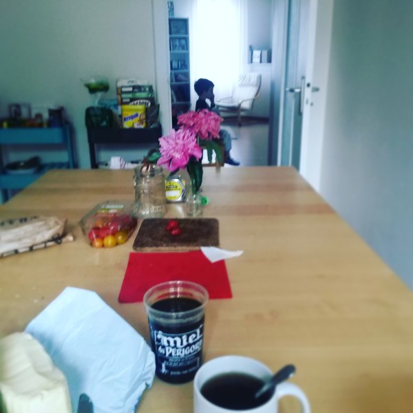 Un mois sans Instants. C’est qu’il s’est passé des tonnes de choses et en même temps rien du tout. Je ne prends pas tellement de photos en ce moment. Je ne sais pas pourquoi. Peut-être le quotidien qui nous happe sans qu’on s’en rente compte. Il y a eu un week-end en amoureux à Biarritz pour fêter nos 15 ans d’amour. Il y a eu les premiers tours de vélo de Mouette. Et la fête des mères <3. Il y a eu la pluie beaucoup. Mais quand même les tomates cerises qui poussent. J’ai assisté au miracle de voir pousser 4 pieds à partir des dernières tomates de l’année dernières que j’avais laissé pourrir sur le sol.  Le potager est plein de fraises mais elles manquent de sucre :(. J’ai planté 2 pieds de courgettes jaunes pour voir. On verra donc. Je suis devenue tatie mais je n’ai pas encore rencontré mon neveu. Bientôt j’espère. Le blog fête ses 4 ans. Plus que 2 jours pour l’abonnement Pomme d’Api et demain un nouveau concours. A la SARLBalcon ben ça bosse, ça cogite et on arrête pas. Sinon vous ça va ?