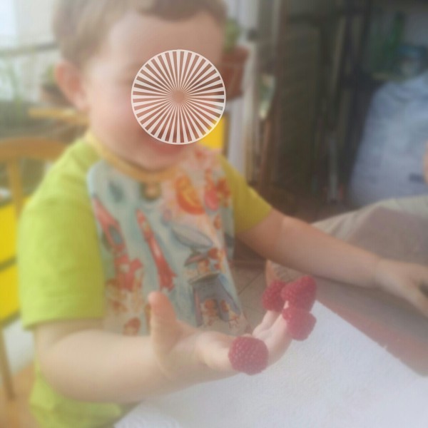 7/ Enfin je l’ai eu ma photo de Mouette avec les doigts framboisés. Il était très fière de manger les framboises comme ça. C’est idiot mais c’était quelques chose que je m’étais dit enceinte que je lui ferais goûter des framboises de cette façon. C’était un de ces moments de bonheur qui font la richesse du quotidien !