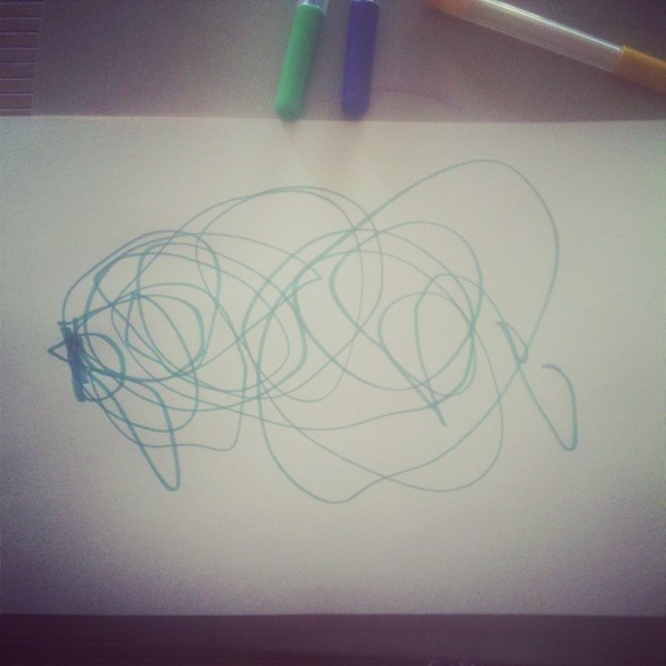 4/ Mouette dessine plusieurs fois par jour. En l’occurrence sur la photo c’est un dessin de son père. Sion on a découvert un dessin au stylo bille sur l’écran de la télé on est ravi… Et je n’ai aucune idée de comment nettoyer ça !