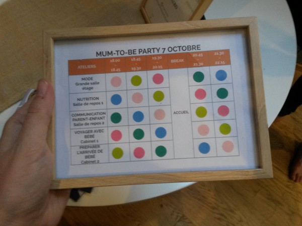 Comme pour la première fois j’ai passé un excellent moment, et même surement meilleur comme je me sentais vraiment à ma place avec mon vendre rond. L’atelier nutrition m’a intéressé même si l’intervenante pouvait avoir des positions un peu rigides sur le lait de vache… on adhère ou pas. L’atelier communication parents-enfants m’a paru beaucoup trop court ! C’était très intéressant et ça m’a donné envie de lire certains ouvrages présentés. Désolée pour la qualité de la photo : lumière douce + appareil photo du tel nul…