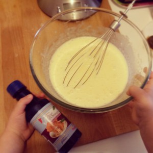 Ce dimanche Mouette et moi avons donc testé une recette de Moelleux à la fleur d’oranger trouvé ici sur Pinterest. C’est vraiment facile et faisable en mode petites mains.