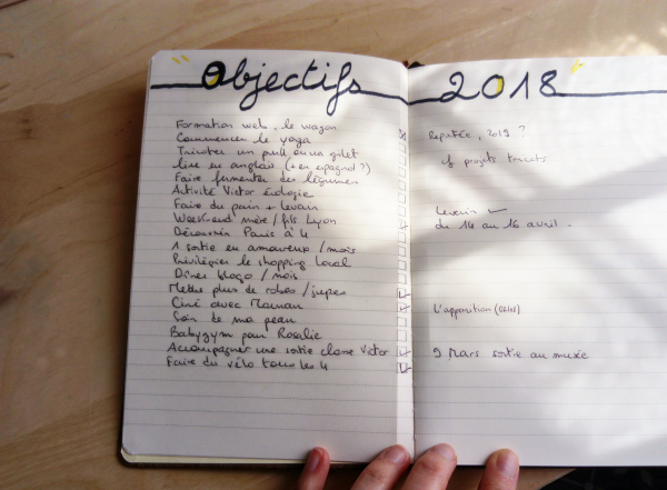 • La première liste est celle de mes objectifs 2018. J’y note les réalisations au fur et à mesure. Ça me donne une vision plus globale que mon article.