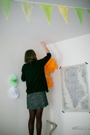 La déco. Alexia et moi avons opté pour le home made et l’emprunt/recup car nous avions un budget serré et la déco coûte souvent cher alors qu’on peut faire pleins de choses soit-même. Les fanions, les guirlandes zigzag et les pompons ainsi que la banderole Babyshower ont été faites par nous. Les plats, bonbonnières… ont été piquées chez les uns et les autres. Au final ça en jette non ? Si comme moi vous organisez avec une copine à distance pensez à vous créer un board secret où chacune pourra épingler les bonnes idées du web pour les garder en mémoire. (Si vous voulez découvrir notre board c’est par ici).