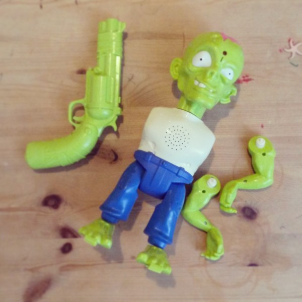 Les moins : le zombie est un peu bruyant une option de modulation serait à prévoir pour une prochaine évolution. Bon et puis le pistolet j’aurais préféré qu’il ne ressemble pas du tout à une arme, une autre forme m’aurait séduite.